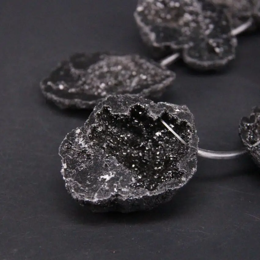 15.5"/strand Top Drilled Black Natural Quartz Geode Druzy Freeform Slab Nugget BeadsRaw Crystal Dru