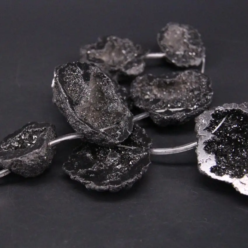 Best 15.5"/strand Top Drilled Black Natural Quartz Geode Druzy Freeform Slab Nugget BeadsRaw Crystal Dru