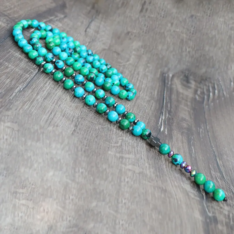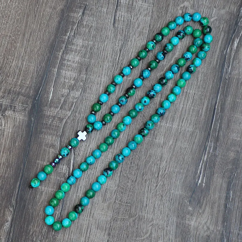 Boho Phoenix Stone Beads Chain Charm Jewelry Hematite Cross Pendant Men Women Necklaces Pendants