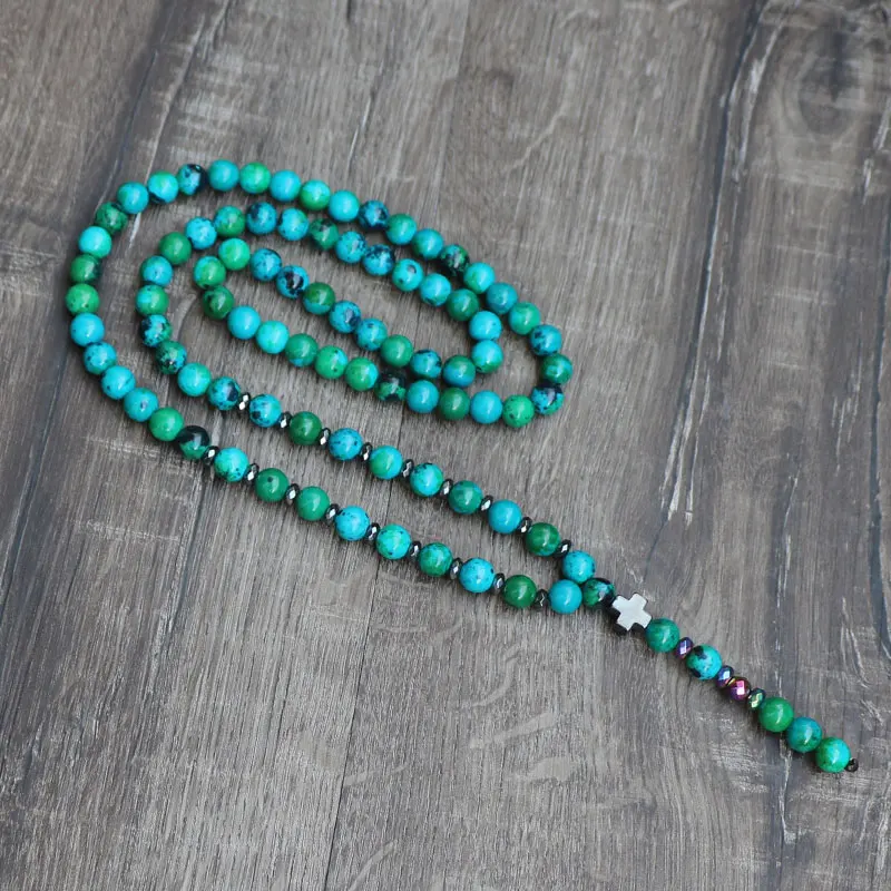 Review Boho Phoenix Stone Beads Chain Charm Jewelry Hematite Cross Pendant Men Women Necklaces Pendants