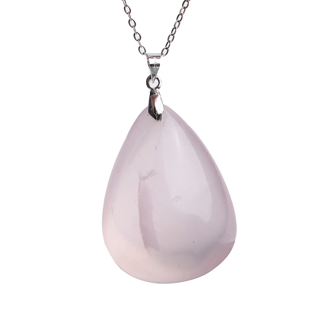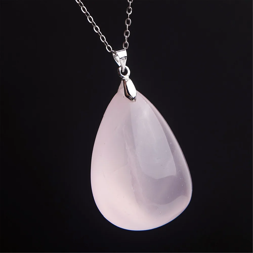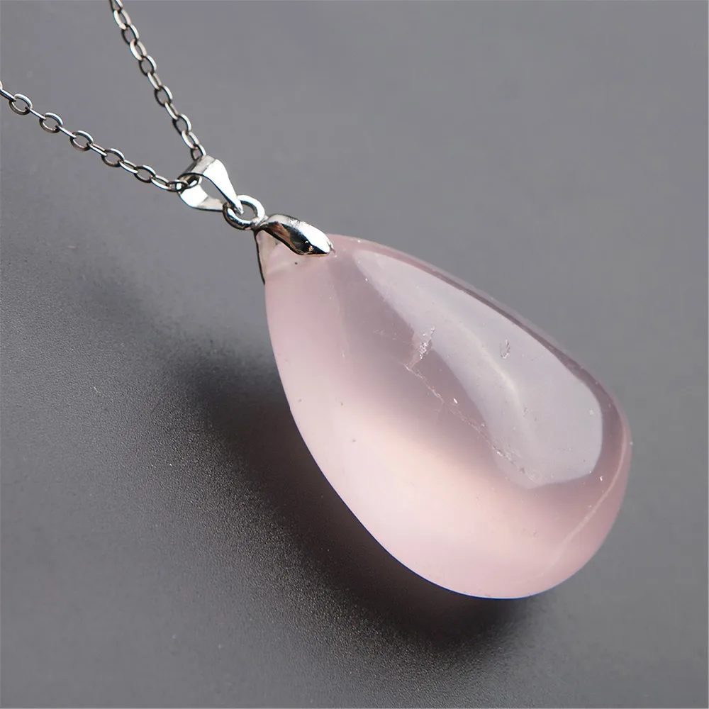 Natural Stone Water Drop Pendant Rose Pink Quartz Crystal Gem Necklace Simple Pendants For Women Je