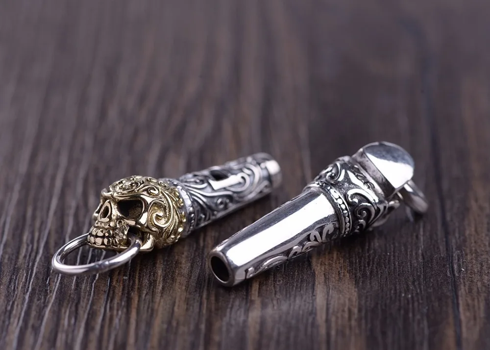 Real 925 Silver Whistle Pendant 100% Pure S925 Solid Thai Silver Trendy Skull Pendants for Men Jewe