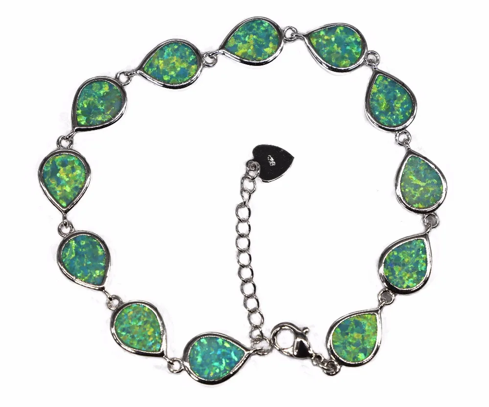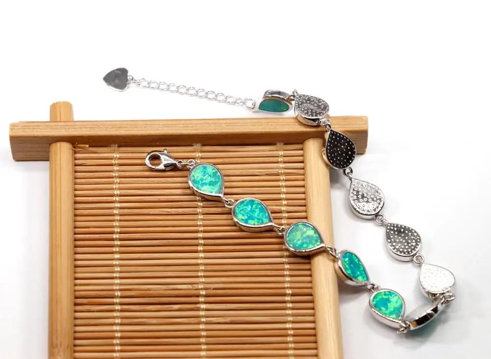 SZ0002 Water Drop Green Opal Bracelets Silver Plated 925 Stamped Friendship Bracelets For Women Jew
