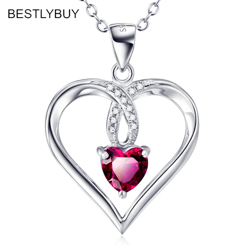 BEST SELLER BESTLYBUY 100% Real 925 Sterling Silver Romantic Love Heart Necklaces & Pendants For Women Girls Fi