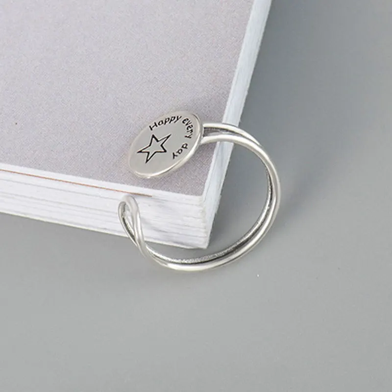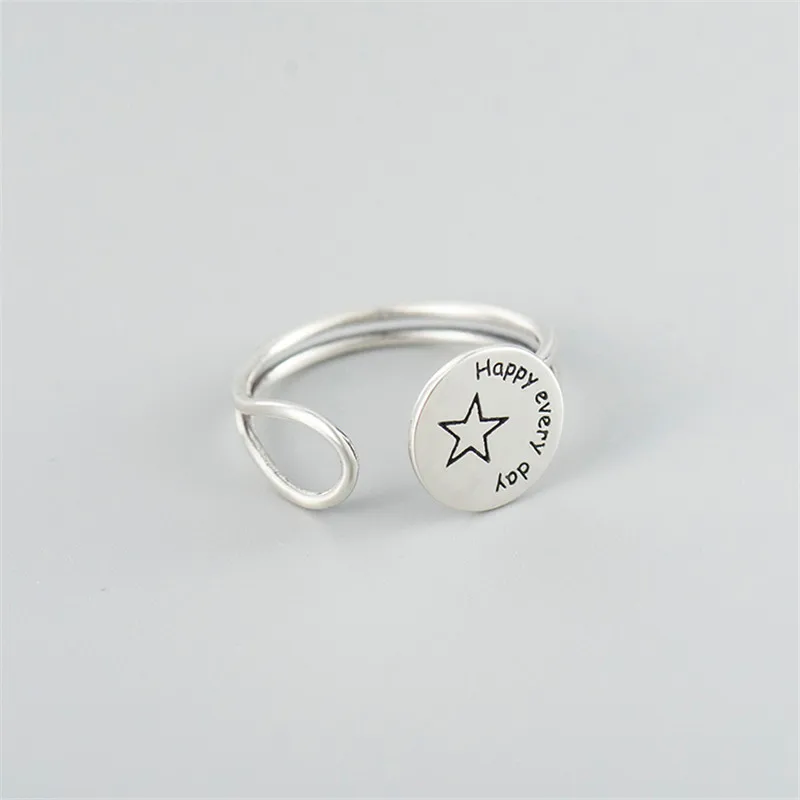 MOLIAM "Happy every day" Letters Star Open Rings for Women Men Genuine 925 Sterling Silver Finger R
