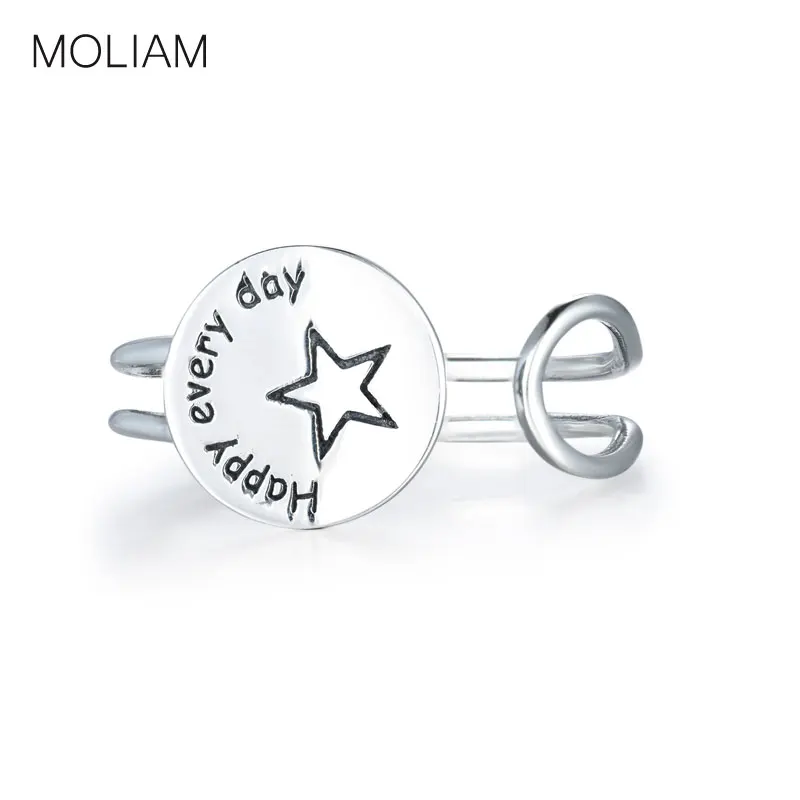 Best Quality MOLIAM "Happy every day" Letters Star Open Rings for Women Men Genuine 925 Sterling Silver Finger R