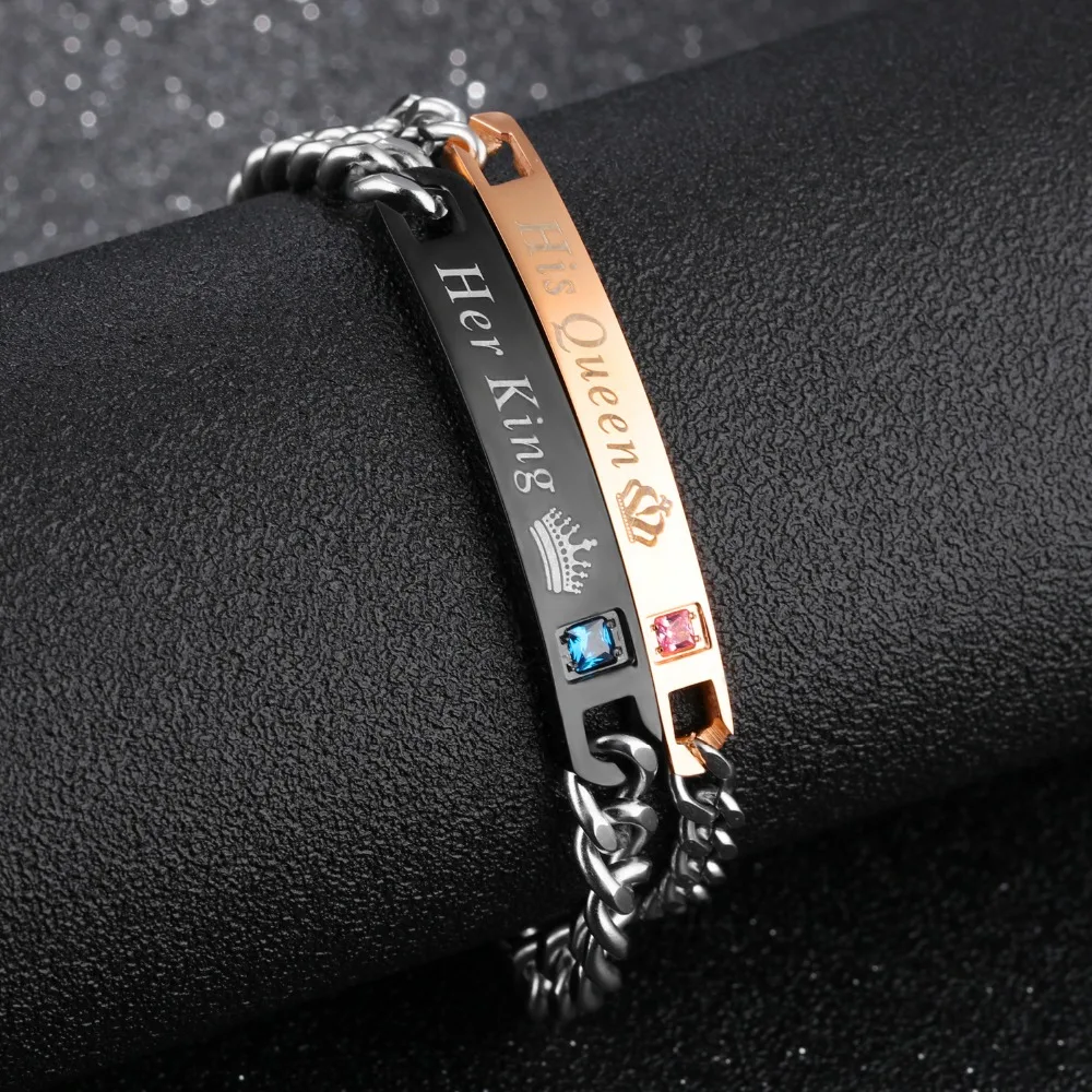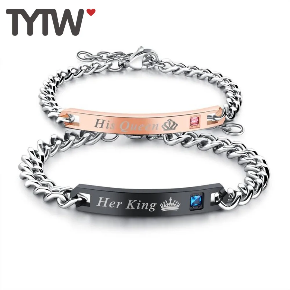 TYTW High Quality Stainless steel Couple Bracelet Lovers' bangle Ceown Customize Fashion gun black