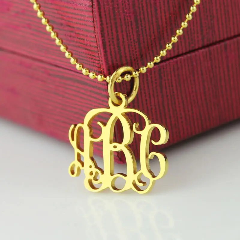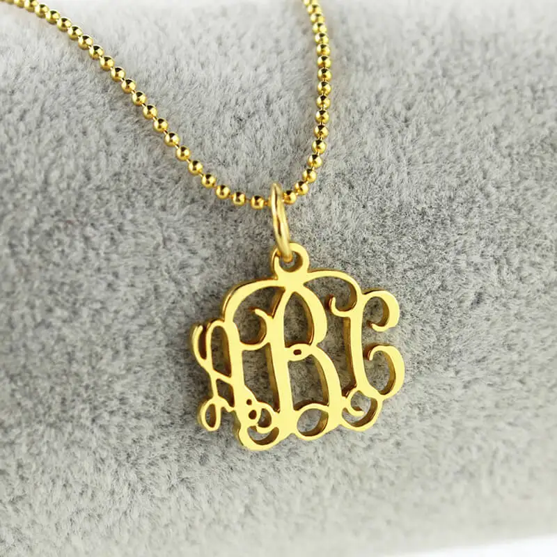 HIGH QUALITY Wholesale Small 0.72 inch Monogram Necklace Silver Personalized Monogram Initials Necklace Jewelry