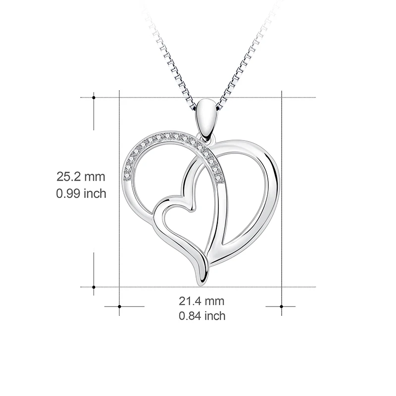 BESTLYBUY New Arrival Luxury 925 Sterling Silver Love Heart Pendant Necklace for Women Wedding Fine