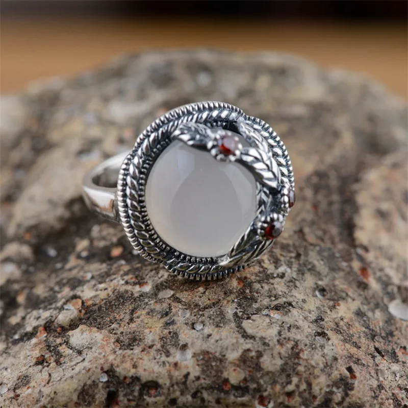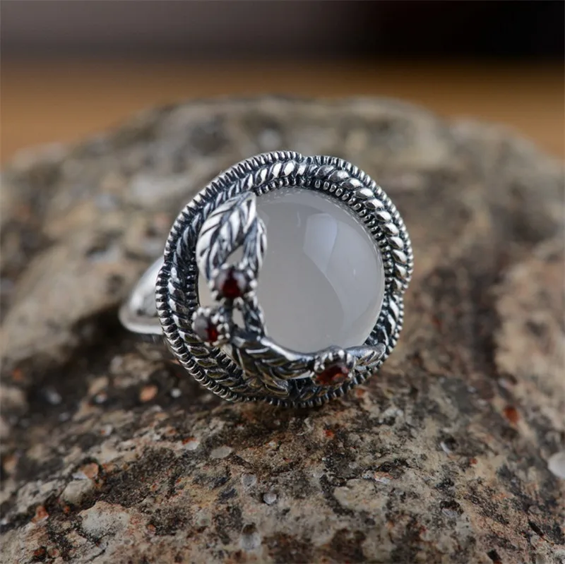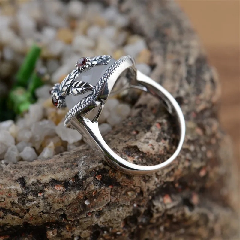HOT Sale BESTLYBUY S925 silver natural chalcedony ring classic simple flowers sterling silver jewelry best g