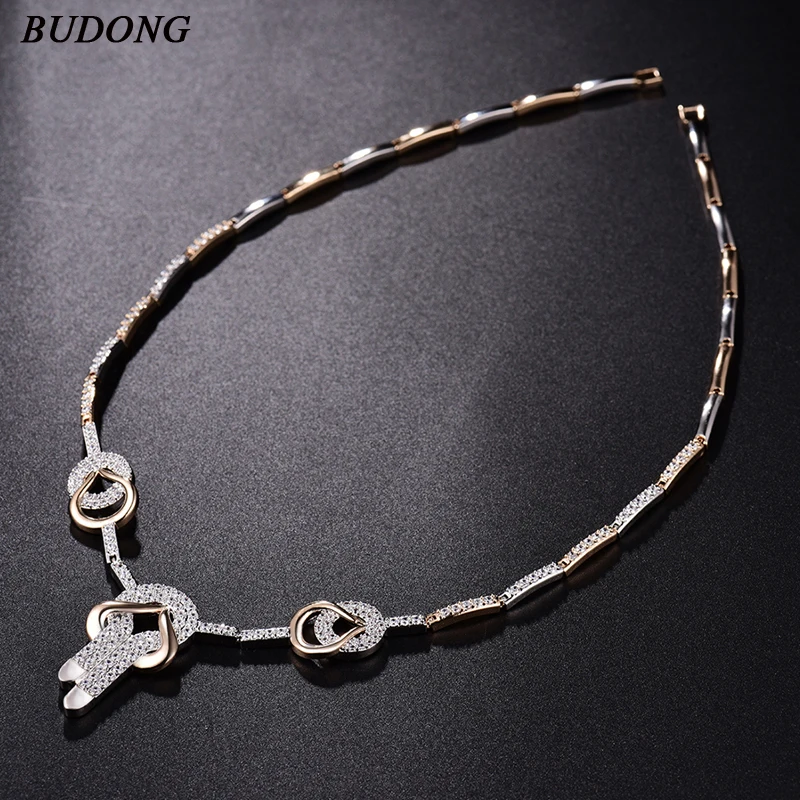 BUDONG Women Pendant&Necklace Birthday Gift Silver/Gold Color AAA+ Chain Cubic Zirconia Accessory W