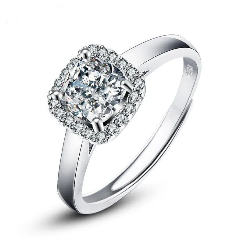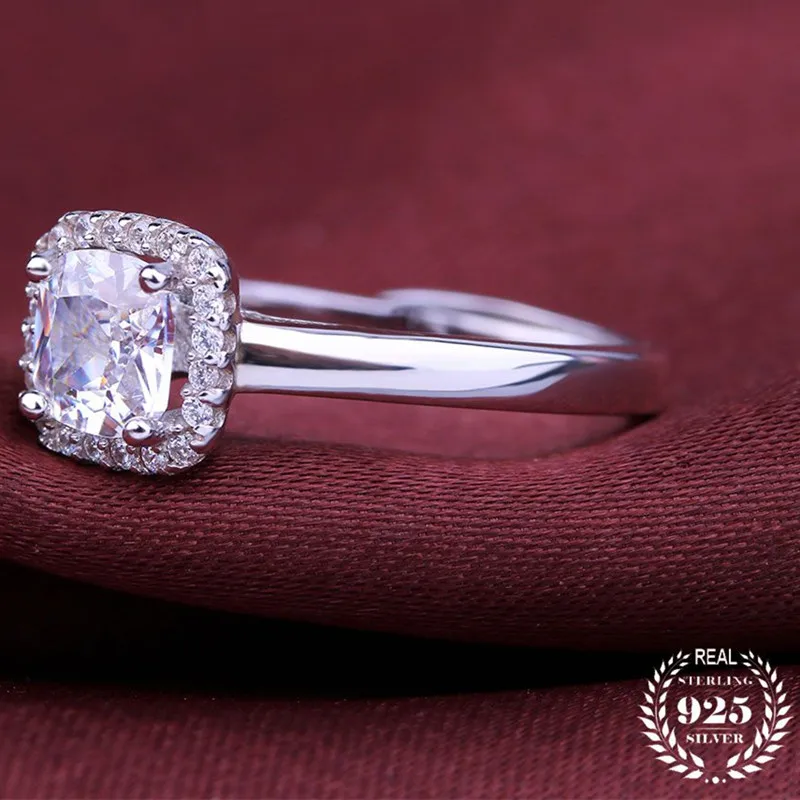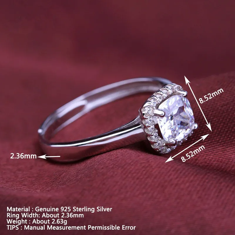 VOJEFEN Genuine Women Jewelry Single Square Zircon Ring Fashion Ring 925 Sterling Silver Engagement