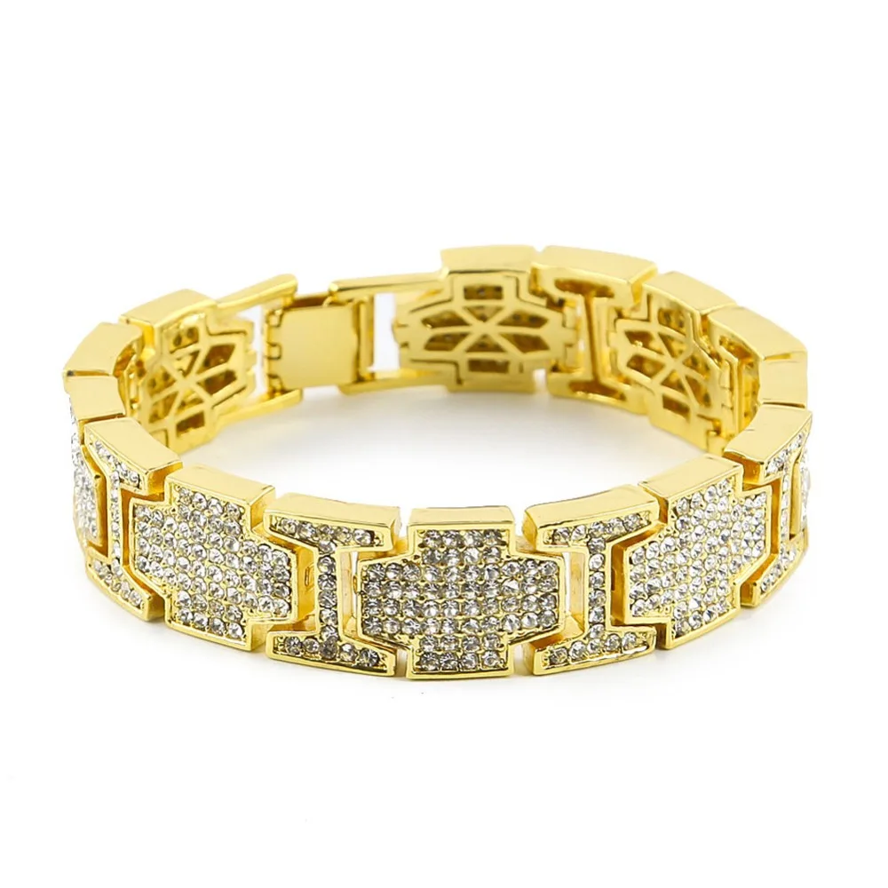 TOP Hip hop Superwide Exaggerated Punk Bangle Shiny AAA+ Rhinestones Bracelets Hip Hop Bling Jewelry T-