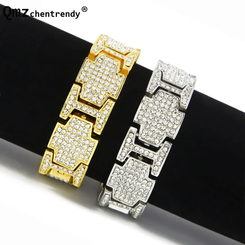 Review Top Hip hop Superwide Exaggerated Punk Bangle Shiny AAA+ Rhinestones Bracelets Hip Hop Bling Jewelry T-