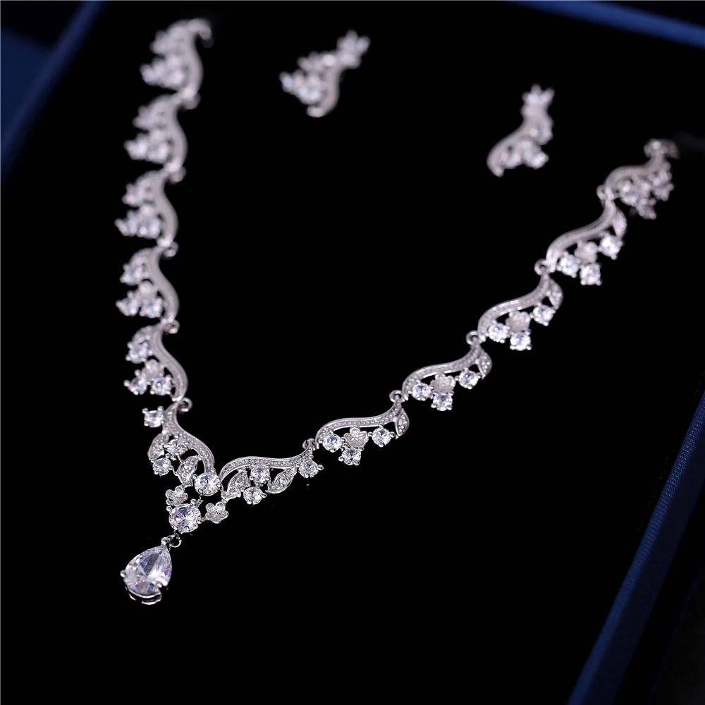 Best Quality Vintage Cubic Zirconia Tiara Crown Bride Wedding Zircon Jewelry Set Micro Inlaid Headband Women Nec